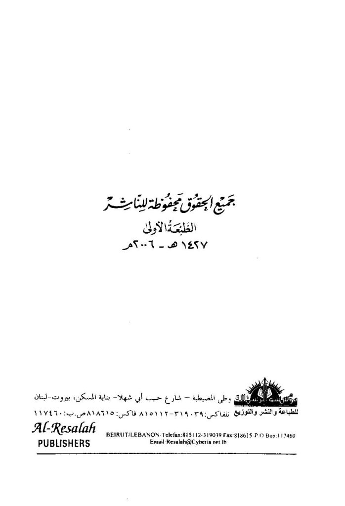 So wenn einer ihn (…)¹, so hat er etwas Verbotenes hervorgebracht, ihn erreicht (obliegt) nicht Fidya, Kaffāra oder Wiedervergeltung (Qiṣāṣ). Und asch-Schāfiʿī sagte: ‚Für ihn (den …¹) ist das Urteil des Islāms (festgelegt)‘ Dies ist falsch, weil der Ursprung seines Kufr uns gewiss ist, so kann die Gewissheit nicht durch den Zweifel weichen“